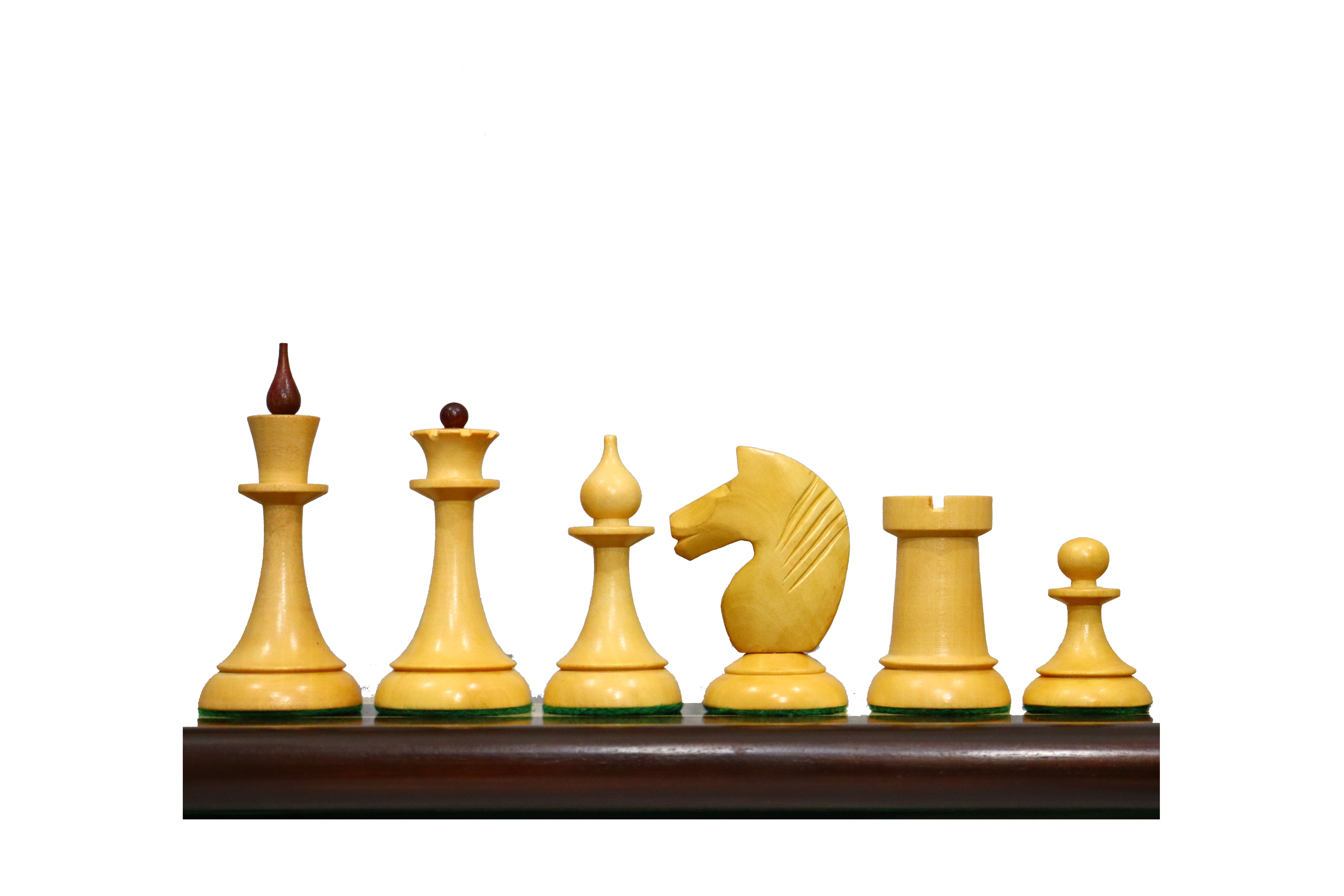 1950's Soviet Latvian Reproduced Weighted Chess Set in Crimson Golden Rosewood | Russian USSR Weighted Chess Pieces | King 4.0"