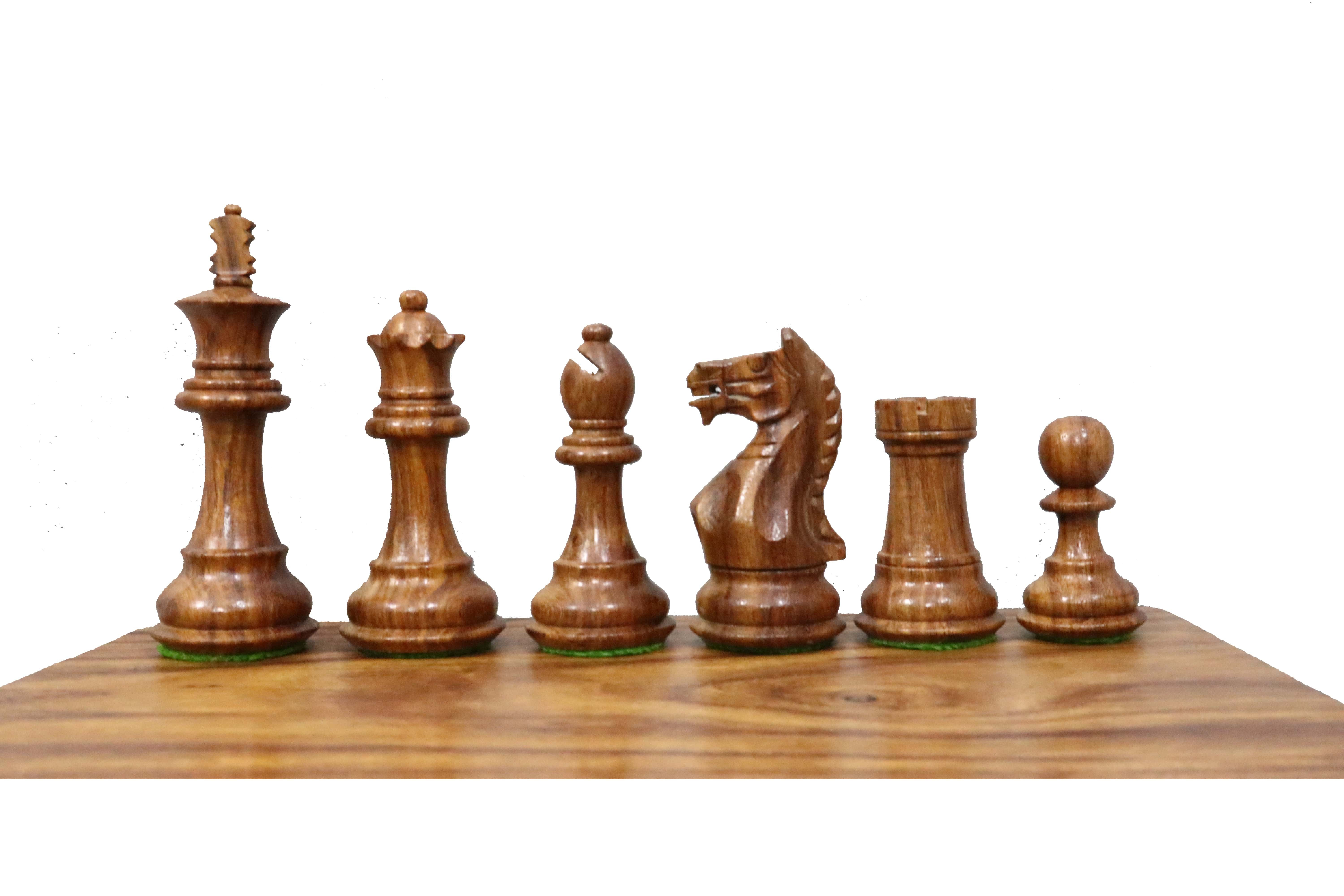 Wooden Chess Set - Fierce Knight Staunton Chess Pieces | 3.5" king Golden Rosewood- Weighted Chess Pieces Only