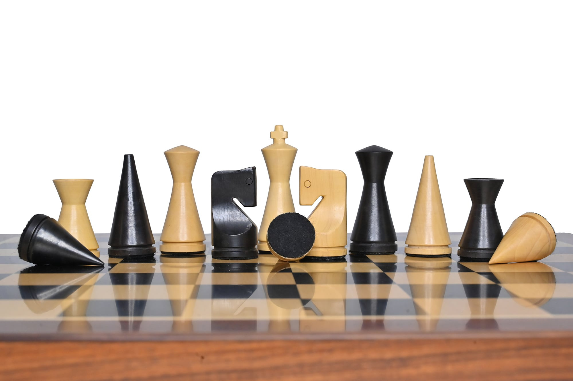Combo Chess Set | 3.1" Russian Poni Chess Pieces with 17" Solid Ebony Wood Chess Board- Handcrafted Minimalist Staunton Chess Set